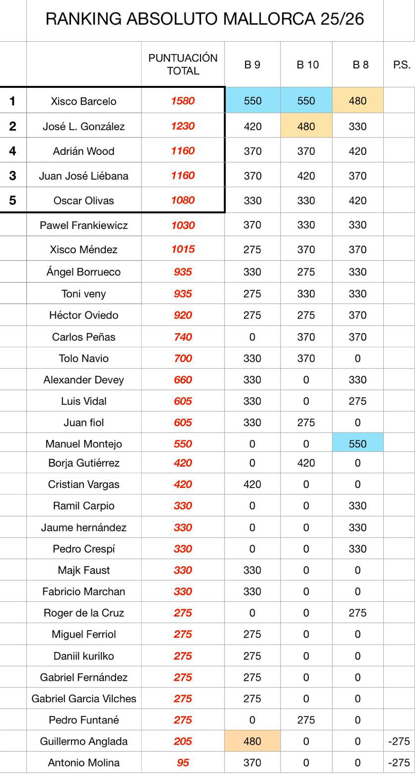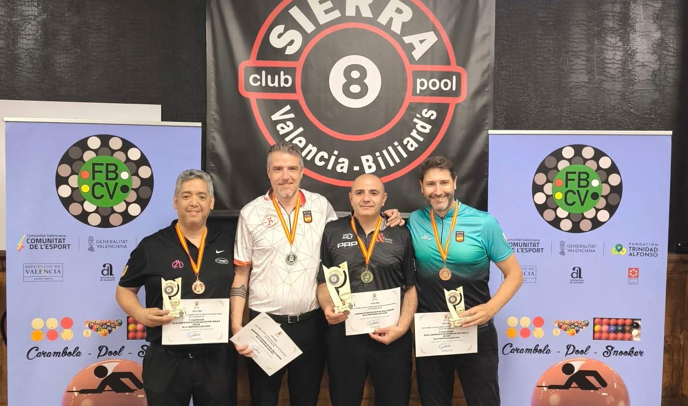Campeonato de España Sénior Bola 8 – Valencia Ver imagen más grande Foto pie: Jorge Díaz, Xisco Barceló, Sergio Lagunas y Javi del Santo Sergio Lagunas Xisco Barceló Jorge Díaz Javi del Santo 9º Jose Luis González 13º Óscar Olivas Bola 9 5º Xisco Barceló 5º Óscar Olivas 5º Jose Luis González Bola 10 5º Xisco Barceló 5º Óscar Olivas 17º Jose Luis González VER PARTIDOS admin2025-07-08T14:01:45+02:0008/07/2025|Competiciones, Información, Noticias|